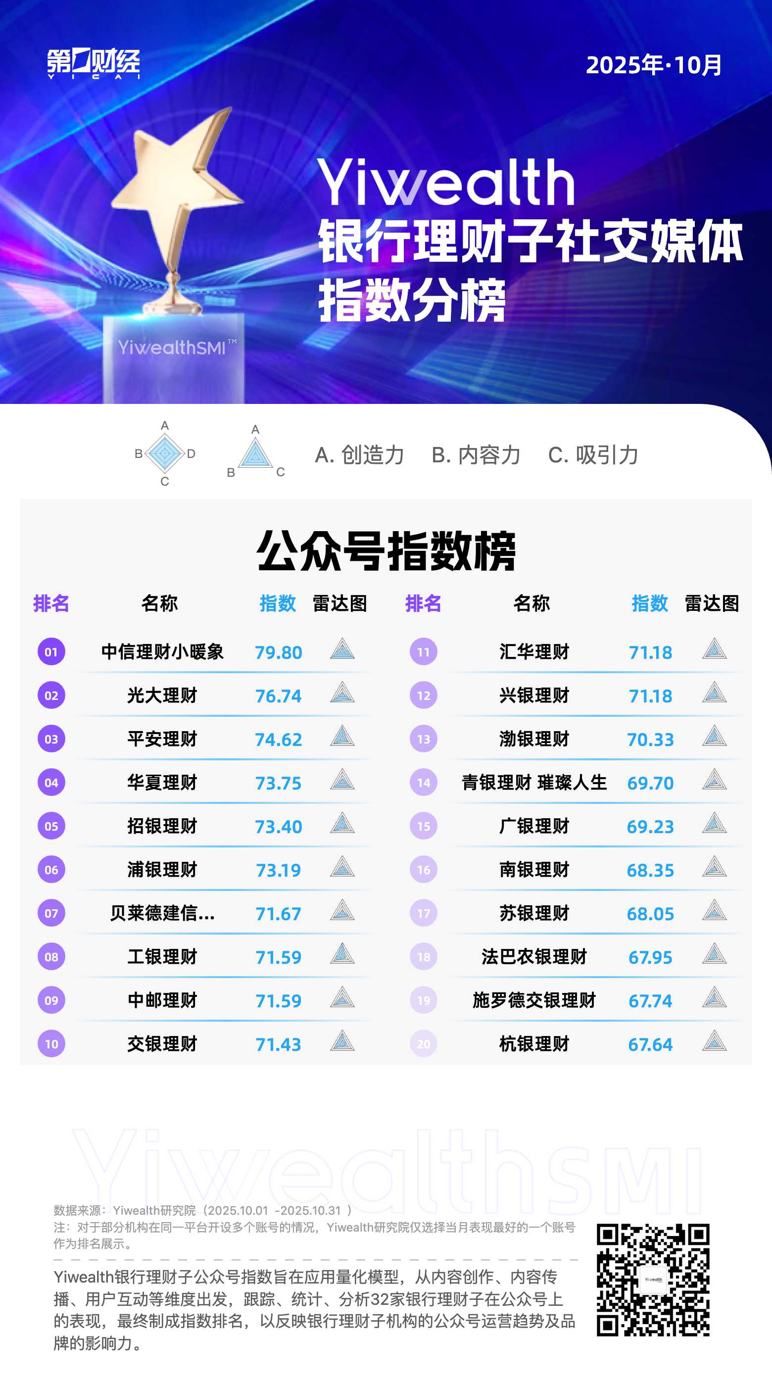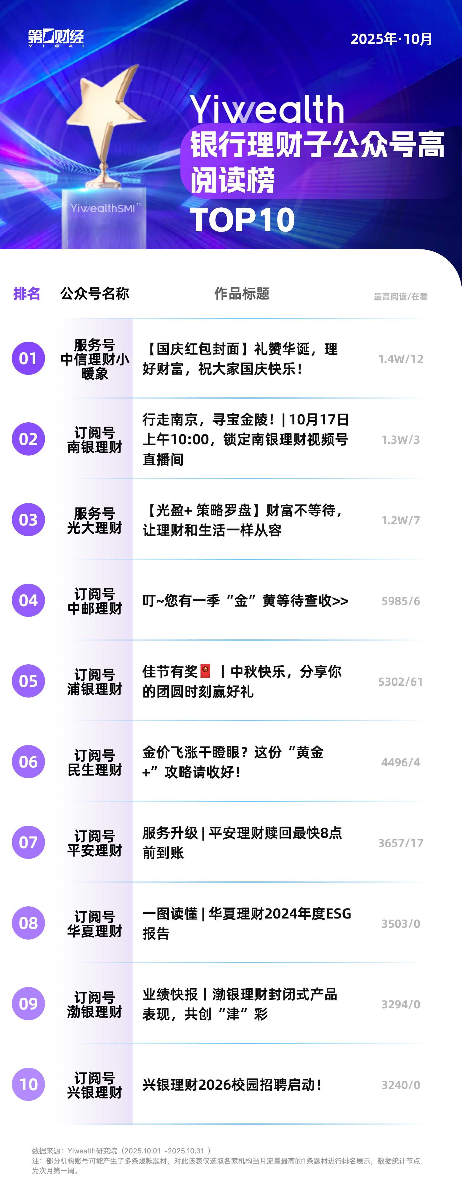 本期为银行理财子公众号榜(2025年10月)。
