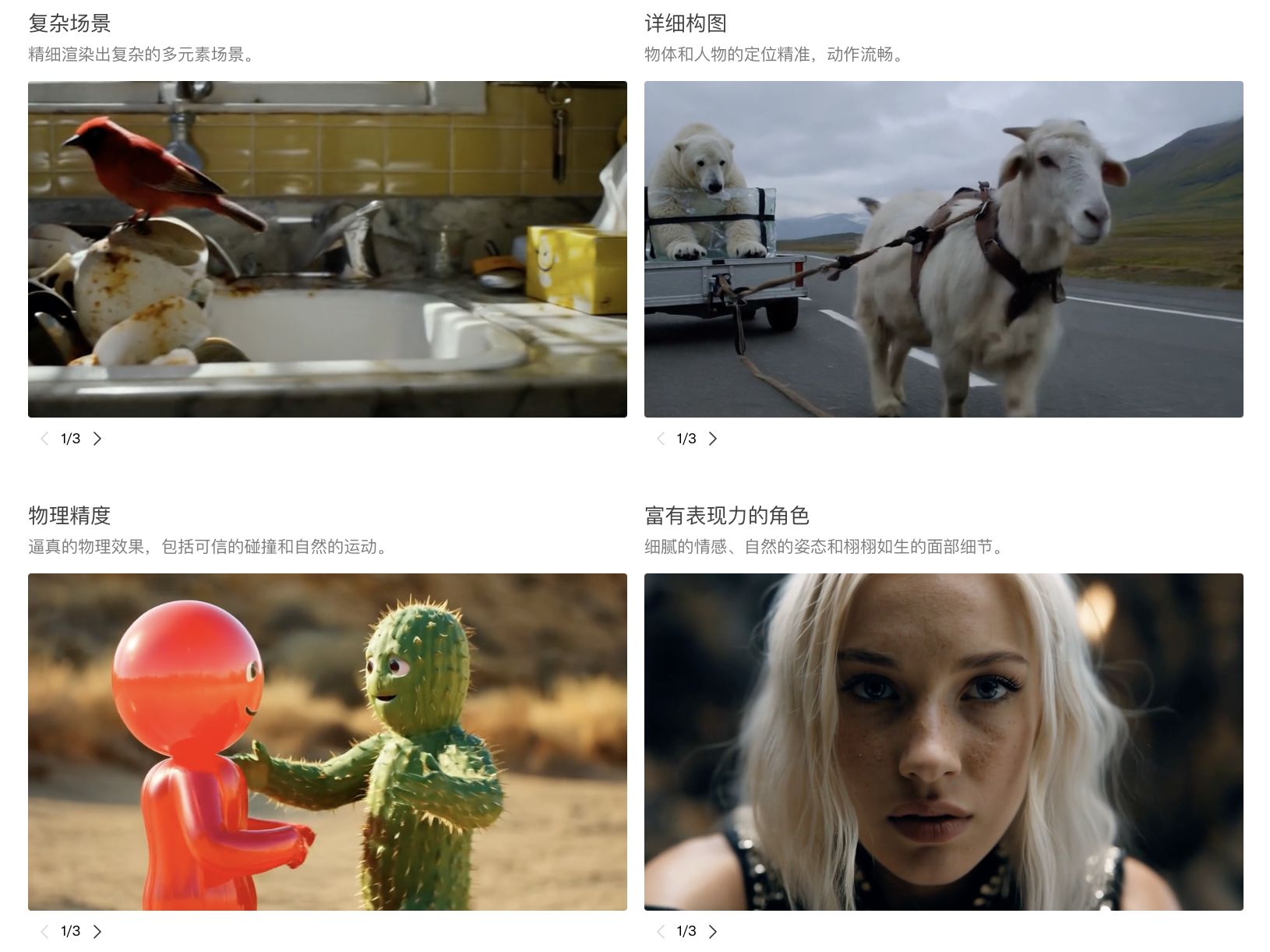 从画面来看,模型在精确的提示词遵循能力、逼真的物理运动效果以及风格控制和视觉一致性等方面有了新的进展。