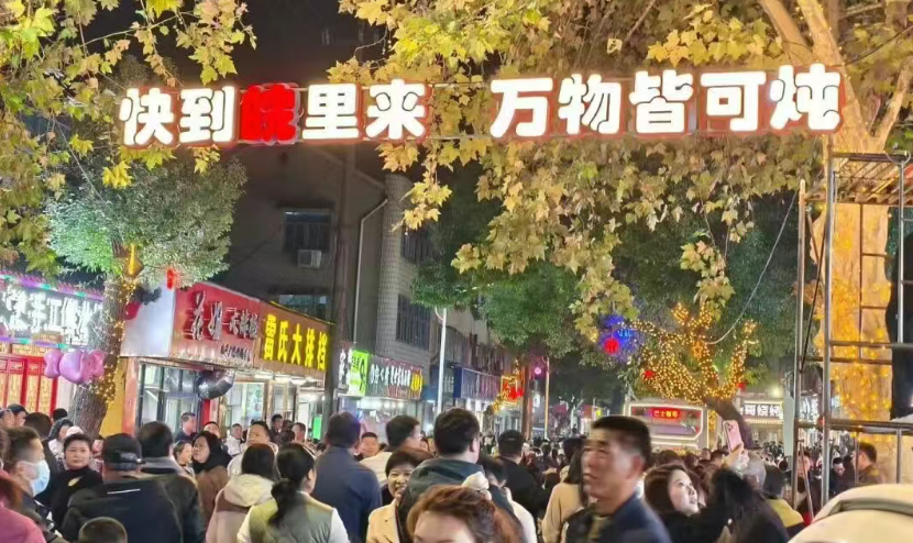 “我烧了20年炖锅,从没想过这条街会有这么多人。”迎春街上“严严大排档”的老板感慨道。他的店铺刚在广德“全民炖锅大武台”第三期比赛中夺得“炖锅之王”称号,如今每天不到饭点就已满座。