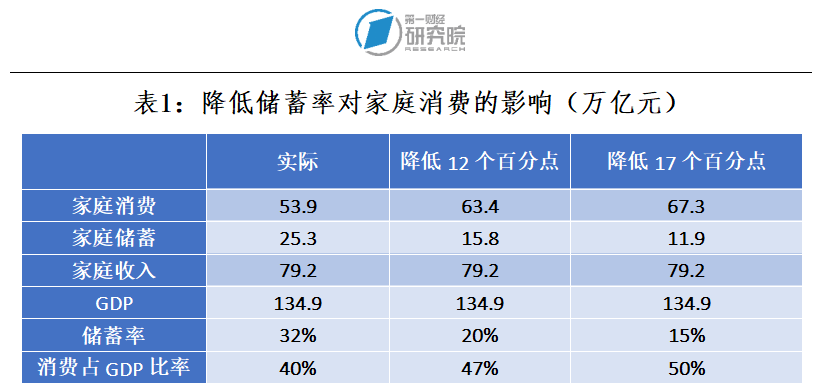 例如,储蓄率从32%下降到15%,下降了17个百分点,这将使消费占GDP的比率提高10个百分点。即使这种情况在几年内逐步发生,也会使GDP结构出现显著的再平衡。