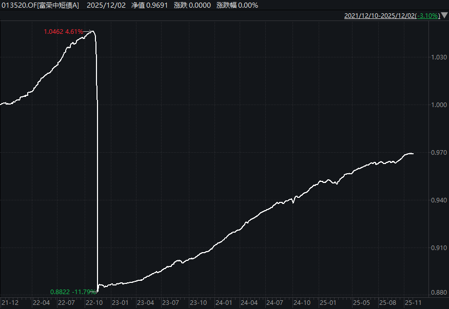 2022年四季报显示,富荣中短债的份额由三季度末的49.51亿元暴跌至1.33亿元,截至今年三季度末重回3.6亿元。从业绩来看,截至今年12月2日,该产品自2022年11月以来的累计回报仍为-7.37%。