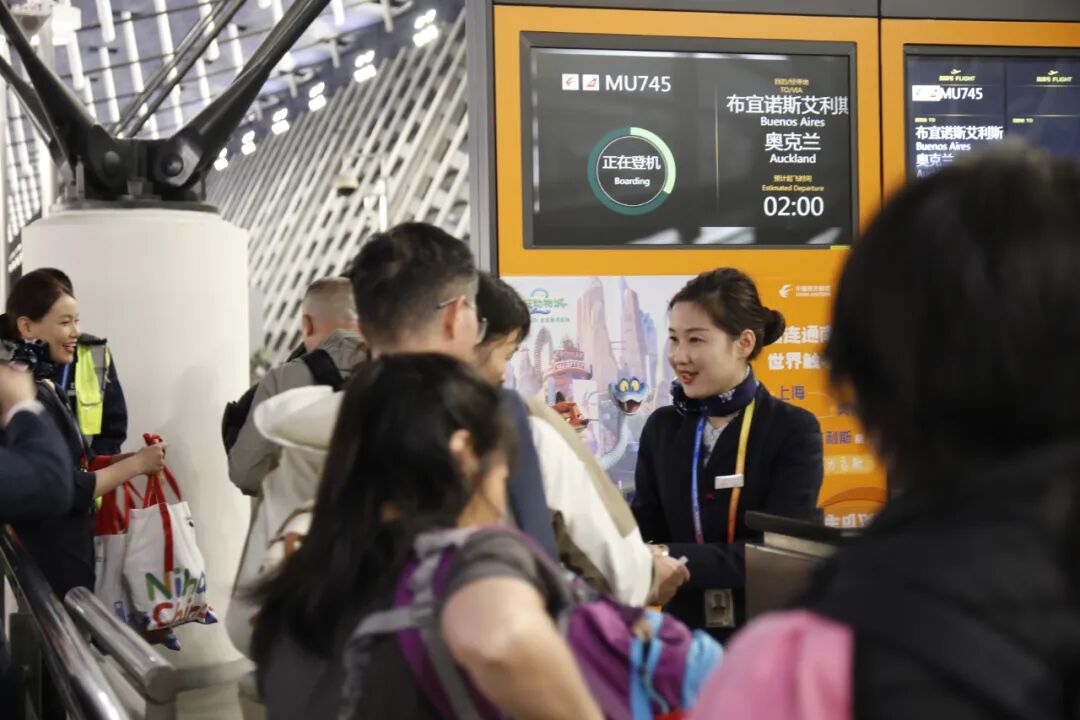2025年12月4日2:19分,中国东方航空“国博号”主题彩绘机执行MU745航班搭载282名旅客从上海浦东国际机场起飞,在经停新西兰奥克兰后,飞赴阿根廷首都布宜诺斯艾利斯。这条跨越2万公里的新航线填补了上海至南美核心城市直飞航线的空白,开辟了连通大洋彼岸的“南向通道”,重塑了三大洲之间的航空出行方式。