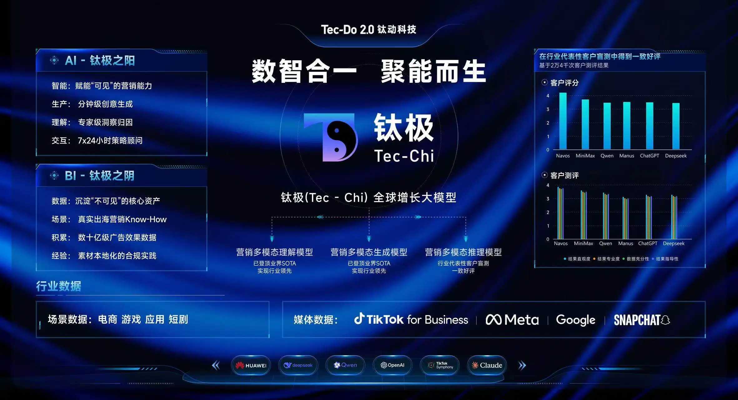 就数字化服务来看,AI驱动的全球增长数字化服务商广州钛动科技股份有限公司(下称“钛动”)带来了首个全球增长大模型钛极大模型、出海营销一站式AIGC解决方案与创意工具平台Tec-Creative,以及全球首个Martech Multi-Agent。