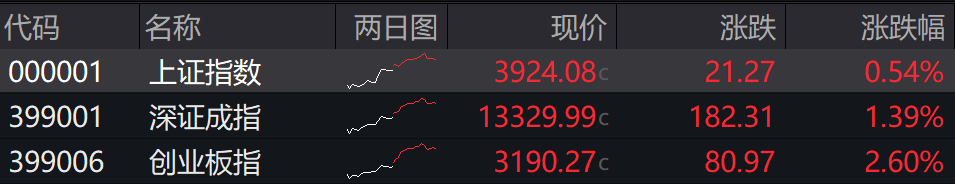 12月8日,A股三大指数高开高走,截至收盘,沪指涨0.54%,深成指涨1.39%,创业板指涨2.6%。