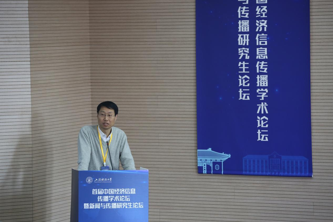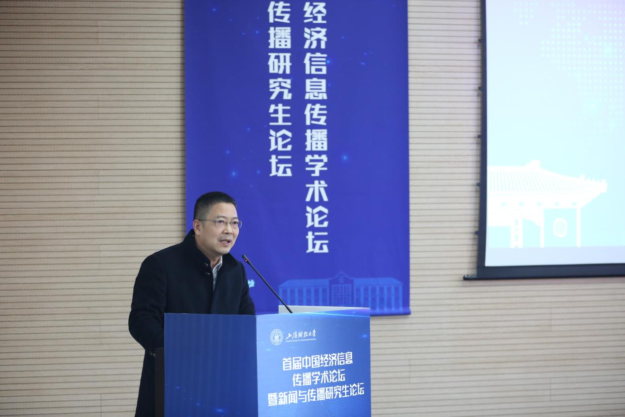 上海财经大学新闻与社会高等研究院经济新闻与传播系主任王学成教授作为主办方代表,在发言中阐释了此次办会初衷。他指出,在技术、教育、行业端等多方面变革的冲击下,传媒经济与财经新闻研究面临学科调整以及学科间破壁等现实压力。经济传媒经济与财经新闻的研究应该实现传播转向、智能转向以及融合转向,聚焦媒介学范式下智能媒介技术对经济的基础性建构作用,以及传播范式下主流媒体、平台媒体传播对经济的显著影响。因此,论坛旨在聚合多方力量,推动学科实现从新闻到传播、智能赋能、跨学科融合的转向。