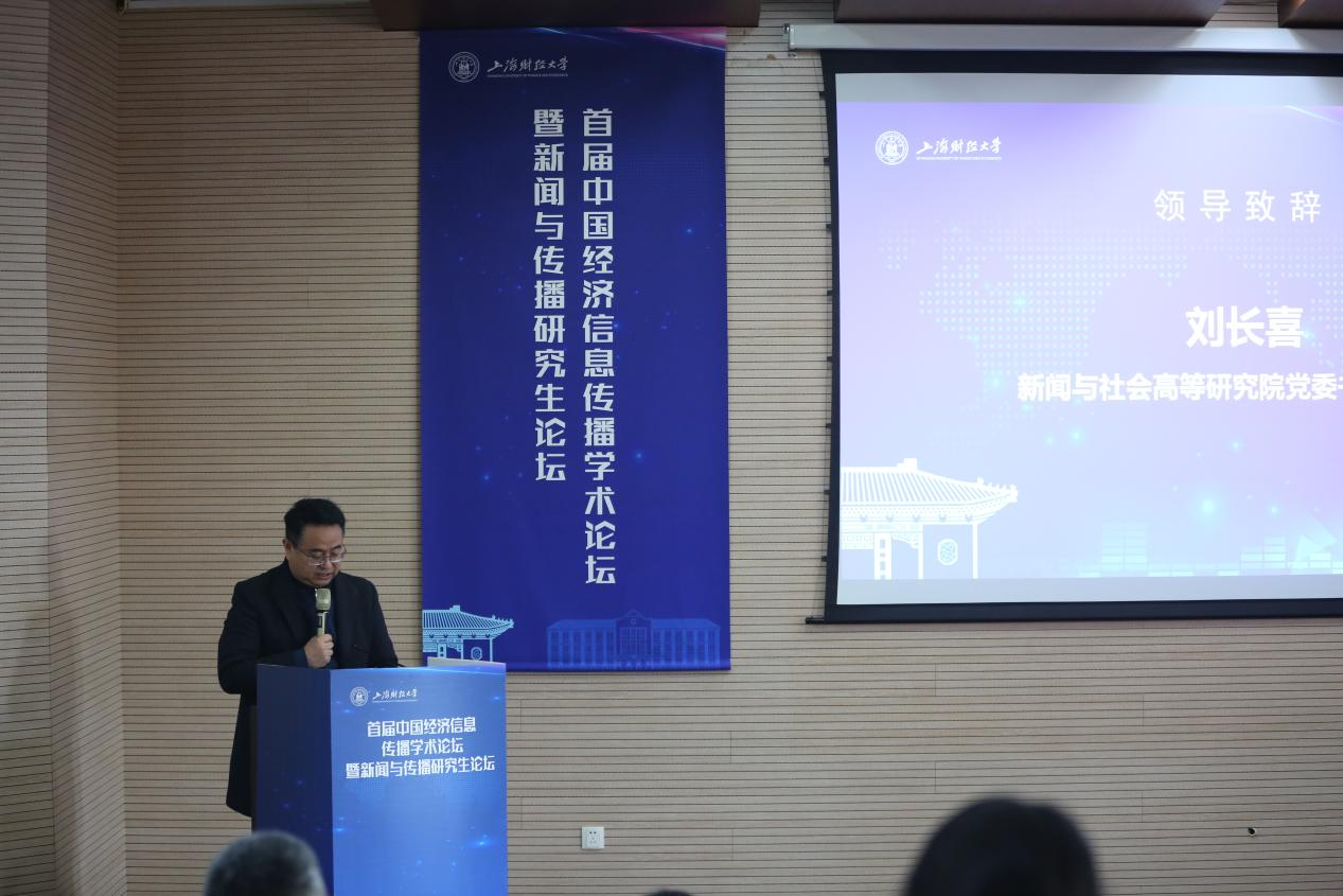 上海财经大学新闻与社会高等研究院党委书记、院长刘长喜在致辞中指出此次论坛聚焦经济信息传播核心主题,旨在理清其内在逻辑、伦理边界与社会效应,助力构建中国自主经济传播知识体系。论坛同步设置研究生论坛,为青年学子搭建交流平台,也有助于凝聚中国经济信息传播的研究与实践力量。
