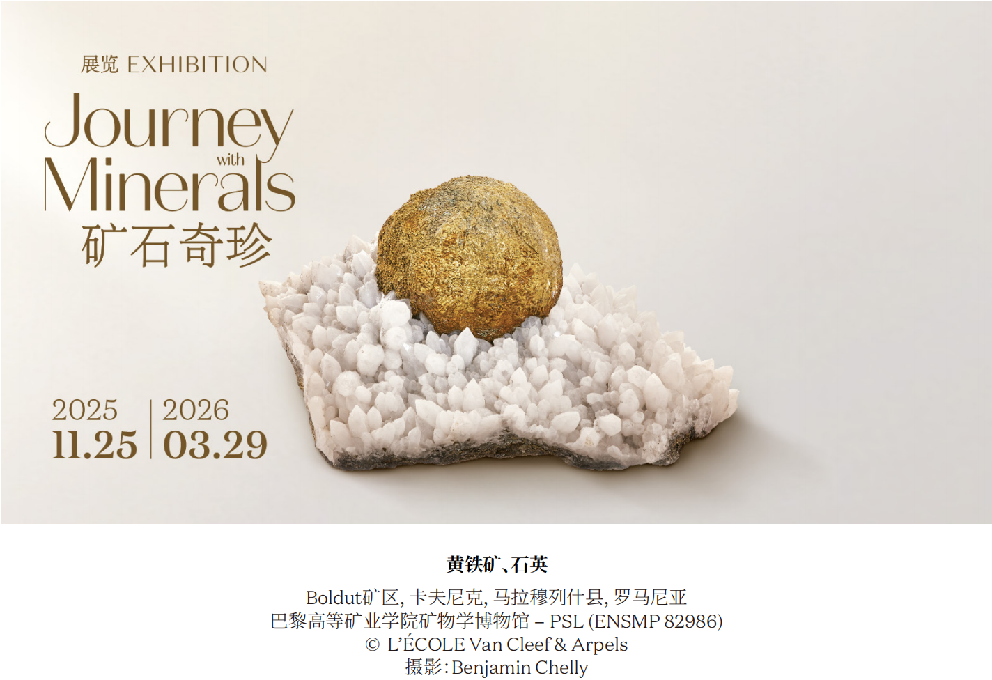 由Van Cleef & Arpels梵克雅宝支持创立的L'ÉCOLE珠宝艺术中心,于2025年11月25日至2026年3月29日,在上海倾情呈献“矿石奇珍”展览。展览汇集70件稀有矿物标本、高级珠宝作品及艺术品,以自然科学与珠宝艺术的双重视角,为观众构筑了一处震撼人心的矿物绮境。