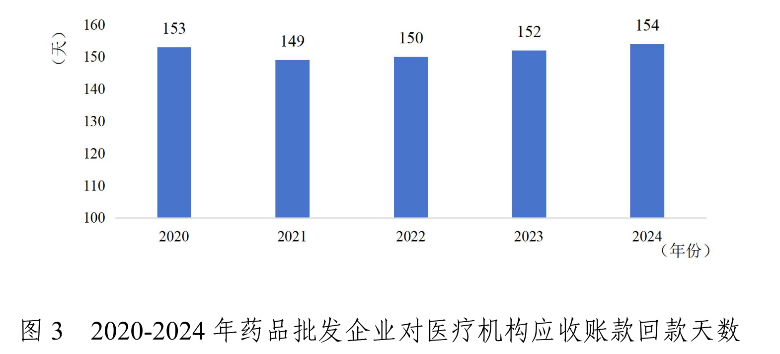 回款天数是衡量医药流通行业资金周转效率的重要指标。报告显示,近五年来,药品批发企业对医疗机构应收账款回款天数平均都在150天左右,也就是说,药企卖药给医院后,平均要等5个月才能回款。