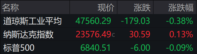 当地时间周二,美股三大指数涨跌互现,截至收盘,标普500指数微跌0.09%,纳指涨0.13%,道指跌0.38%。