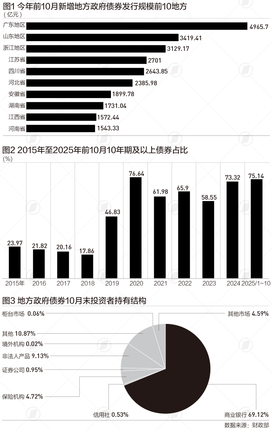 根据财政部近期披露的地方政府债券市场报告(2025年10月),今年前10个月全国36个省市(自治区、直辖市、计划单列市)发行了新增债券约4.7万亿元。其中,广东地区(不含深圳)、山东地区(不含青岛)、浙江地区(不含宁波)、江苏、四川发债规模稳居前五。这五个省份经济总量也位居全国前五。