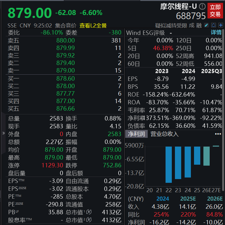 个股方面,摩尔线程低开超6%,公司提示股票交易风险:目前新产品和新架构均处于在研阶段,量产及产生收入仍需一定时间。