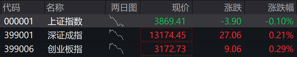沪指低开0.10%,深成指高开0.21%,创业板指高开0.29%。