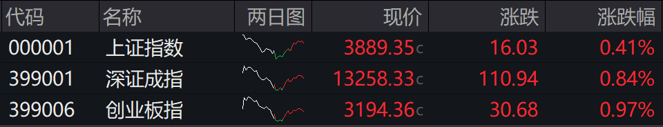 11:03 A股三大指数集体翻红,全市场超3500只个股上涨,电力、可控核聚变、商业航天板块涨幅居前。