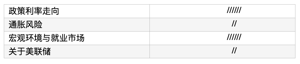 通胀风险依然清晰存在,主要来自受到关税影响的商品。我们预计这是一次性影响,但最近我们经历了通胀比所有人预计都更顽固的情况。这次会再次发生吗?比如说关税通胀比预想的延续时间更长,如果企业持续延缓传递关税成本,又比如说整体经济和就业市场再次进入紧绷形成通胀压力,我们认为这可能性不大。委员会成员都看到这个情况但对风险评估各有不同,我们没有忽视通胀风险但是需要对它做出评估。