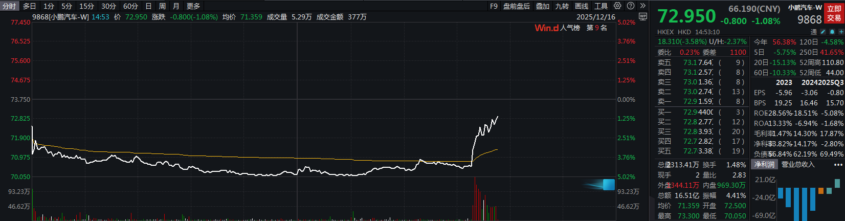14:53 小鹏汽车港股跌幅快速收窄至1%。消息面上,第一财经独家获悉,小鹏汽车已在广州市获得L3级自动驾驶道路测试牌照,并启动常态化的L3道路测试。