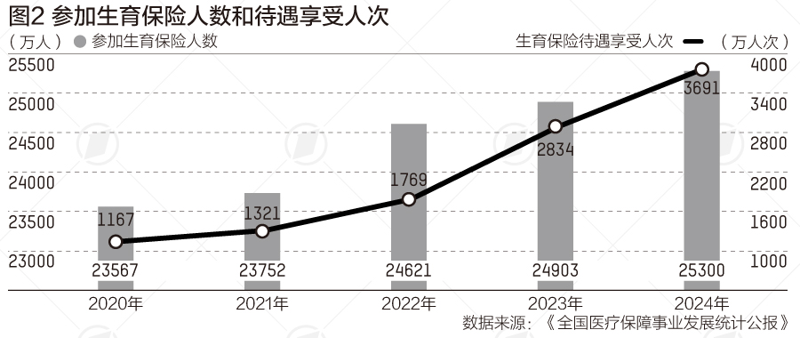 《2024年全国医疗保障事业发展统计公报》显示,2024年全国参加生育保险25299.52万人,比上年增加396.38万人,比上年增长1.6%。2024年享受各项生育保险待遇3690.80万人次,比上年增长30.2%;生育保险基金支出1402.93亿元,比上年增长19.2%。