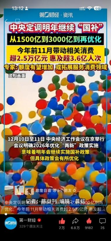 图文与视频的互补。此次报道最突出的亮点之一,是短视频成为最大的传播增长点。24条视频内容总播放量超5000万,其中10条视频播放量突破百万。视频化表达不仅降低了受众的理解门槛,更通过算法推荐机制实现了更广泛的传播覆盖。比如《中央定调明年继续“国补”,从1500亿到3000亿到再优化,今年前11月带动相关消费超2.5万亿元 惠及超3.6亿人次》这条短视频播放量接近700万。与此同时,图文内容依然承担着深度解读和专业分析的重要功能,两条微信深度解读文章10万+的出现,证明了优质图文内容在专业受众中的不可替代价值。