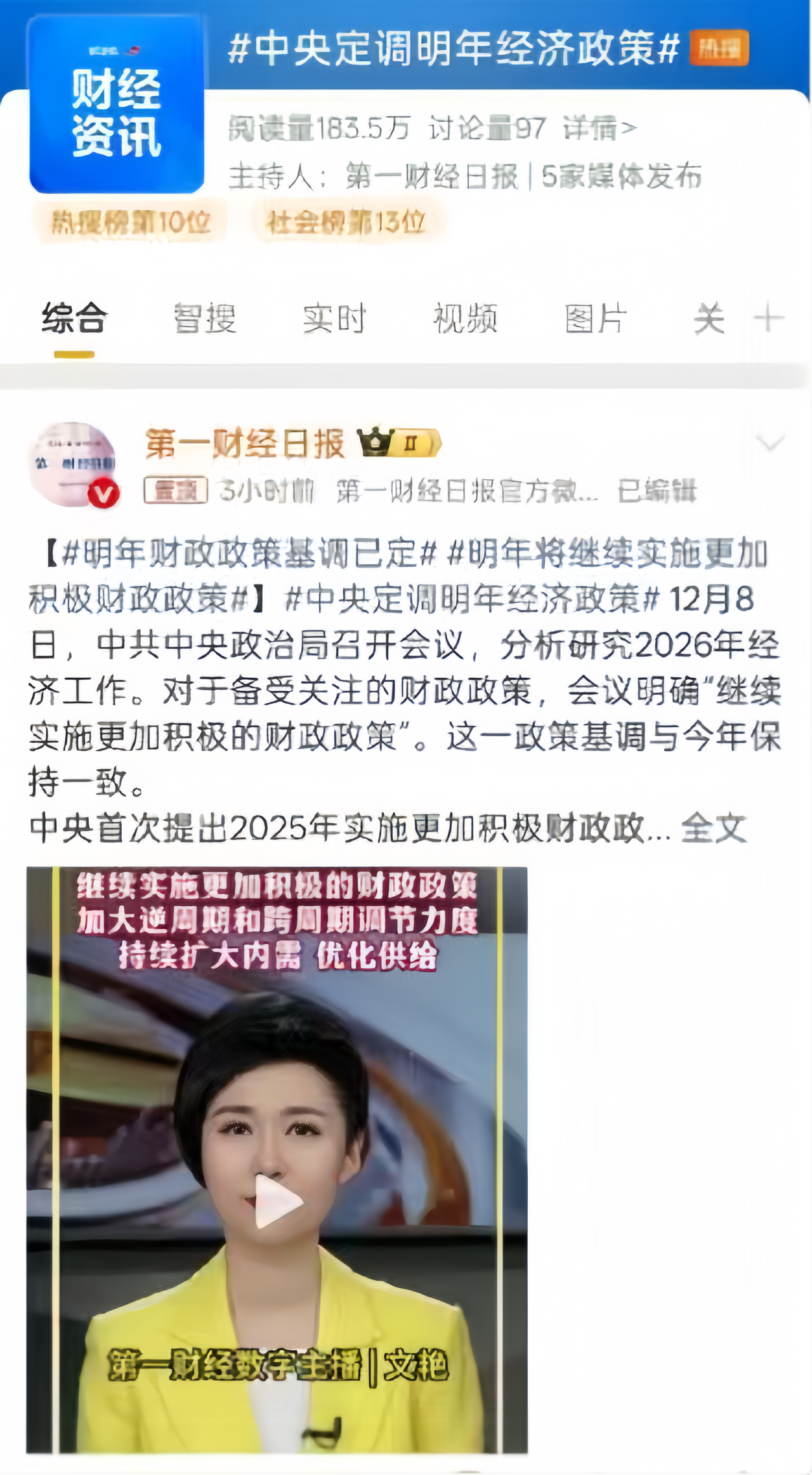 12月12日,记者原创深度报道陆续推出,从中央经济工作会议的新提法到八大重点任务,从财政政策到金融改革等多个维度,对会议精神进行系统化拆解。视频团队推出主播说新闻、小编快评等多种形式进行传播,直播部还邀请权威专家学者进行专业解读,为市场提供清晰指引,相关策划一直持续到13日。这种多形式、多层次的内容供给,既满足了专业人士对政策细节的深度需求,也照顾到了普通用户对民生话题的关注热情。