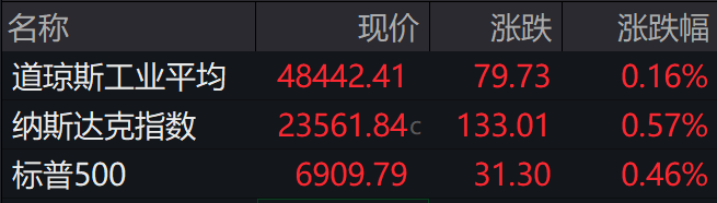 当地时间周二,美国股市收高,标普500指数创新高。截至收盘,道指涨0.16%,标普500指数涨0.46%,纳指涨0.57%。