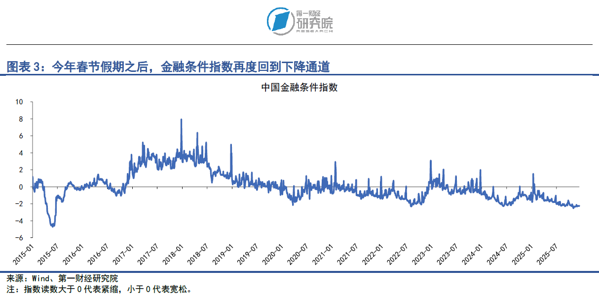 在2025年12月15日至12月19日当周,第一财经研究院中国金融条件日度指数均值为-2.25,与前一周持平。从年内来看,指数下降0.87。