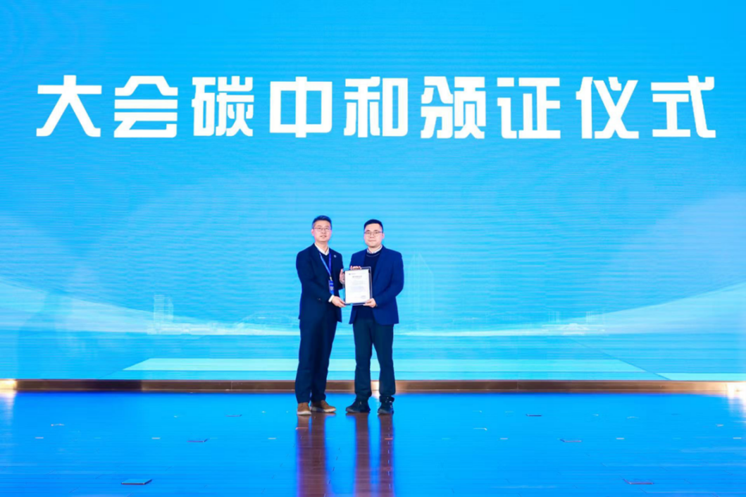 本次大会秉持绿色办会理念,全面核算了会议筹备、举办、收尾各环节碳排放量,并通过注销相应碳减排量确保会议全过程实现“碳中和”。彭峰向碳管理体系(合肥)服务中心负责人王涛颁发碳中和证书。