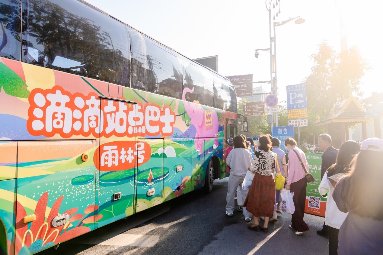 新上线的“雨林之心号”滴滴巴士自西双版纳告庄西双景站点出发,直达中科院热带植物园,正是为满足游客“点到点”需求的个性化旅行巴士。