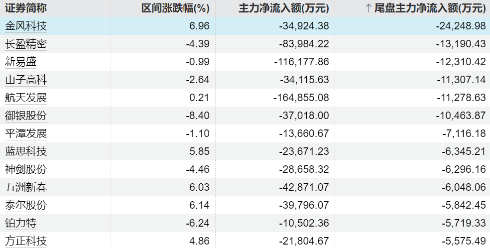 主力今日尾盘买卖这些个股