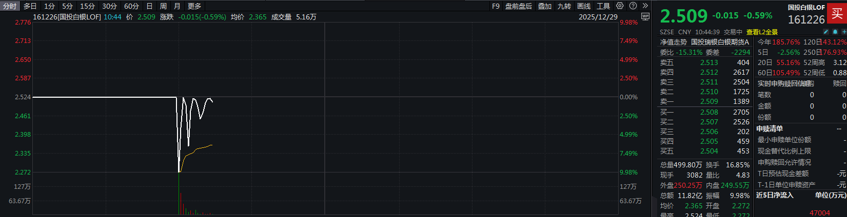 10:44 国投白银LOF复牌一度跌停,现打开跌停快速反弹,成交额超11亿元。
