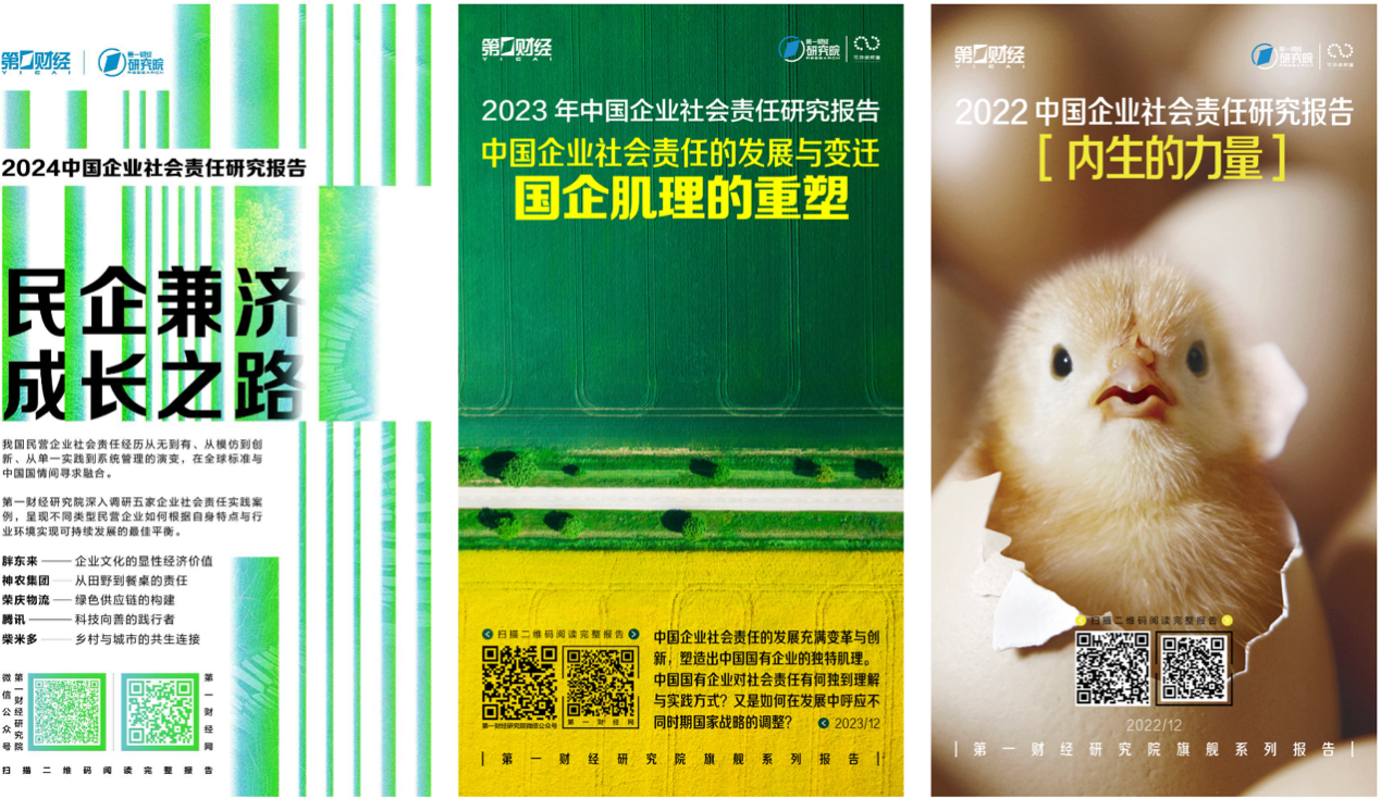 作为一家立足中国、面向全球的智库,第一财经研究院持续推进“中国企业社会责任研究”这一长期课题,先后发布《内生的力量:2022中国企业社会责任报告》《2023中国企业社会责任发展与变迁:国企肌理的重塑》和《2024中国企业社会责任研究报告:民企兼济成长之路》,从整体框架、国有企业到民营企业,逐步构建起一套跨所有制结构、跨发展阶段的中国企业社会责任研究方法论。