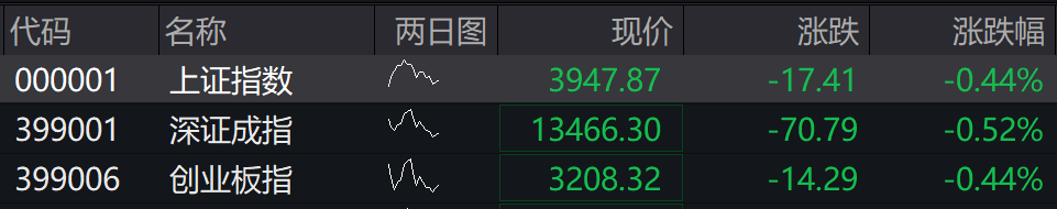 沪指低开0.44%,深成指低开0.52%,创业板指低开0.44%