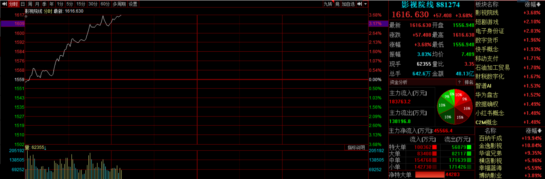 10:36 影视板块盘中震荡反弹,百纳千成、金逸影视涨停,华谊兄弟涨近10%,幸福蓝海、横店影视、博纳影业跟涨。消息面上,据灯塔专业版,截至12月28日18时05分,2025年贺岁档(11月28日—12月31日)档期总票房(含预售)已达52.45亿元。