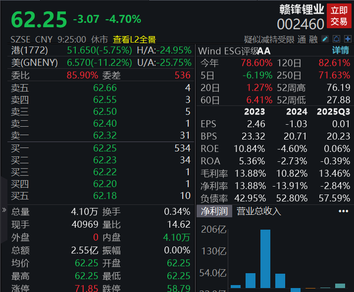 个股方面,赣锋锂业低开近5%,公司公告,公司于2025年12月29日收到宜春市公安局的移送起诉告知书,因涉嫌内幕交易罪单位犯罪,案件已移送检察机关审查起诉。