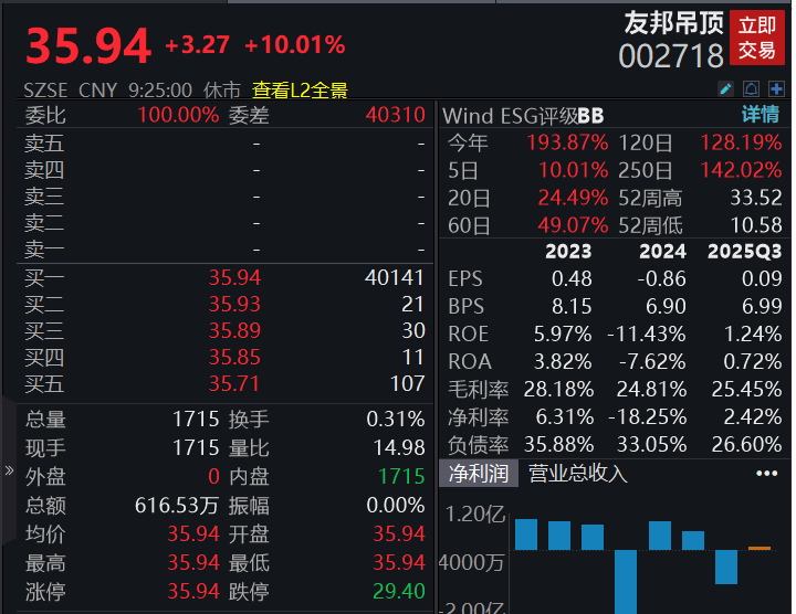友邦吊顶复牌涨停,公司公告,公司实控人将变更为施其明。
