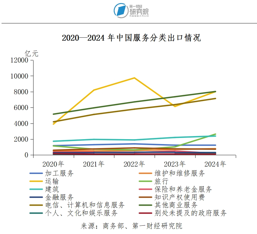 第一,持续优化服务贸易结构,促进高附加值服务的出口。高附加值服务出口的增长是推动服务贸易结构优化的关键因素。当前中国电信、计算机和信息服务,专业管理和咨询服务等领域的出口增长显著,成为服务出口结构优化的重要推动力,未来需要继续推动这些重点行业的服务出口,持续优化服务贸易结构。同时,还应加快推动发展金融、咨询、知识产权等知识密集型服务贸易发展,推动专业服务的国际化发展。此外,应继续推动传统服务转型升级,在旅游服务中,继续多元化的高端旅游产品,减少旅行服务逆差。