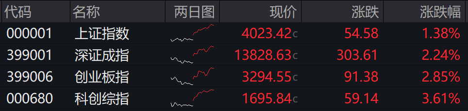 1月5日,A股主要指数集体高开后震荡走强,沪指时隔34个交易日重回4000点。截至收盘,沪指涨1.38%,深成指涨2.24%,创业板指涨2.85%。科创综指涨3.61%。