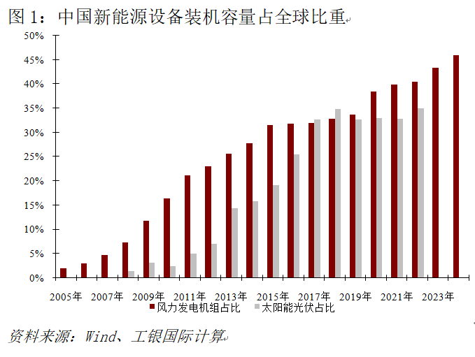这一点上,中国具有天然优势。根据国际可再生能源署(IRENA)数据,2024年中国贡献了全球光伏新增装机的61.2%(276.8吉瓦),并占全球新增风电装机的69.4%(79.4吉瓦)。光伏与风电发电成本下降速度全球领先。IRENA数据指出,中国陆上风电的度电成本(0.029美元/千瓦时)、光伏度电成本(0.033美元/千瓦时)均低于全球平均水平。此外,东部负荷中心与西部新能源基地通过特高压输电技术实现了大规模互联,使电力具备跨区域调度能力。