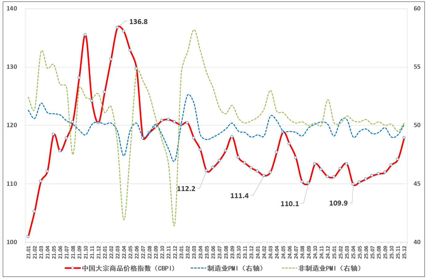 中国物流与采购联合会发布的最新数据显示,2025年12月,中国大宗商品价格指数(CBPI)为117.9点,同比上涨6%,环比上涨3.2%,连续8个月实现环比上升。