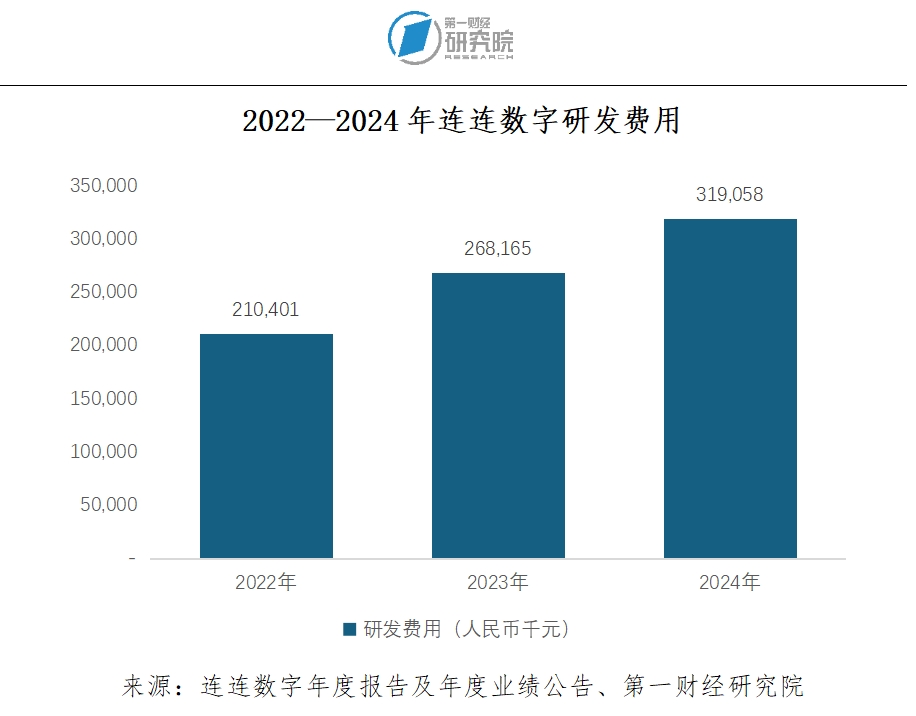 事实上,企业的科技属性也体现在其较高的研发投入中。截至2024年年末的数据显示,连连数字超过三分之一的员工从事研发相关工作,当年研发费用同比增长19.0%,至3.19亿元。