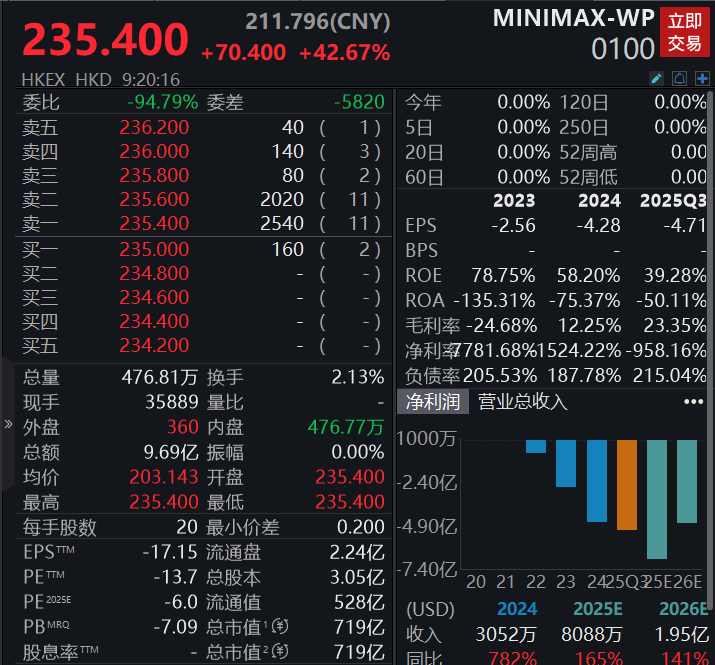 三只新股今日上市,MiniMax高开42.67%,公司近日公告最终发售价及配发结果,香港公开发售获1837.17倍认购,国际发售获36.76倍认购,所得款项总额约48.18亿港元。金浔资源高开26.67%,瑞博生物-B高开29.38%。
