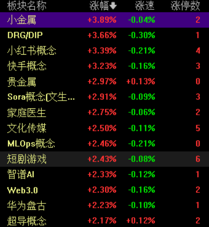 盘面上,AI应用题材爆发,影视、短剧游戏方向领跑。商业航天、人形机器人、小金属概念股涨幅居前。光伏、大金融板块走弱。