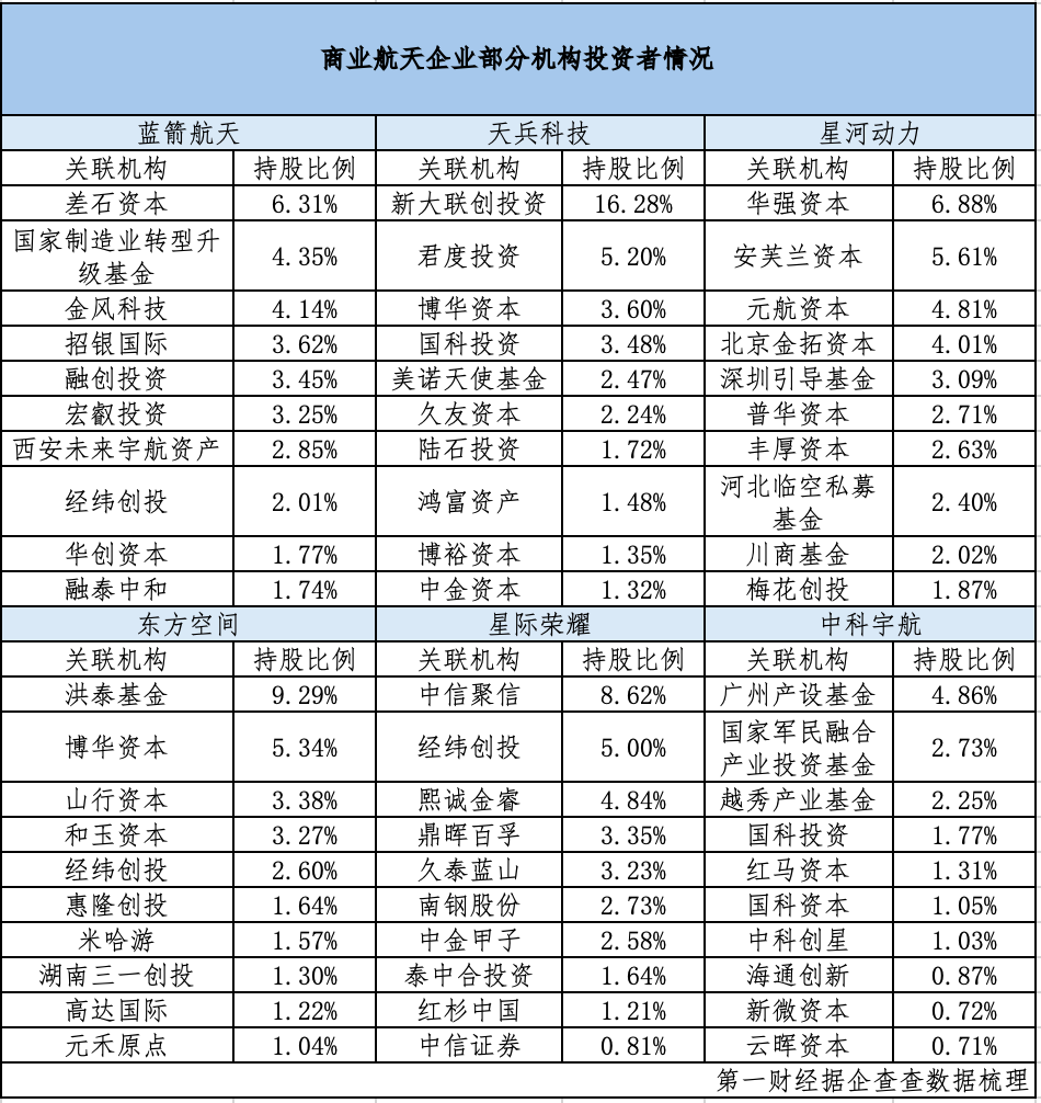 在这场关乎未来的产业竞赛中,哪些投资机构已占据先机?综合企查查数据及公开资料,目前商业航天的投资方主要可分为四类。
