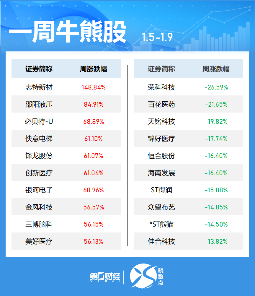 ►牛熊股:7股涨超60%,最牛股周涨近150%