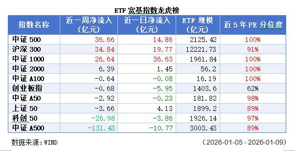 永赢国证商用卫星通信产业ETF(159206.SZ):单周净流入35.89亿元,为全市场ETF资金流入榜首,覆盖商业航天、卫星导航、低空经济等概念。