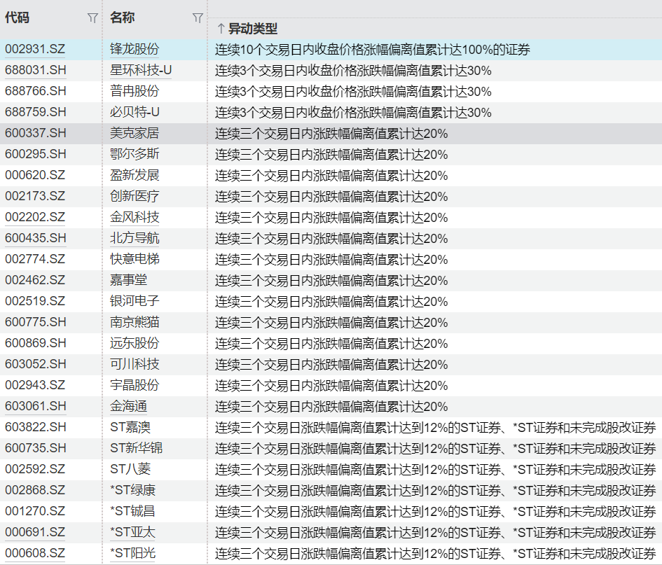 连续异动个股一览