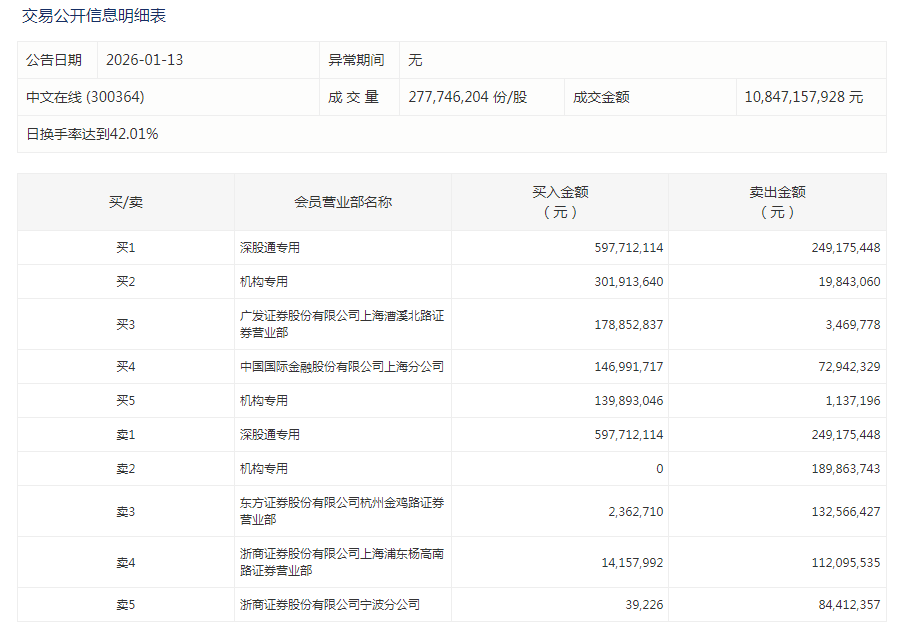 中文在线今日涨5.83%,成交额108.47亿元,换手率42.06%。盘后龙虎榜数据显示,深股通买入5.98亿元并卖出2.49亿元,净买入3.49亿元;三家机构专用席位买入4.42亿元并卖出2.11亿元,净买入2.31亿元。