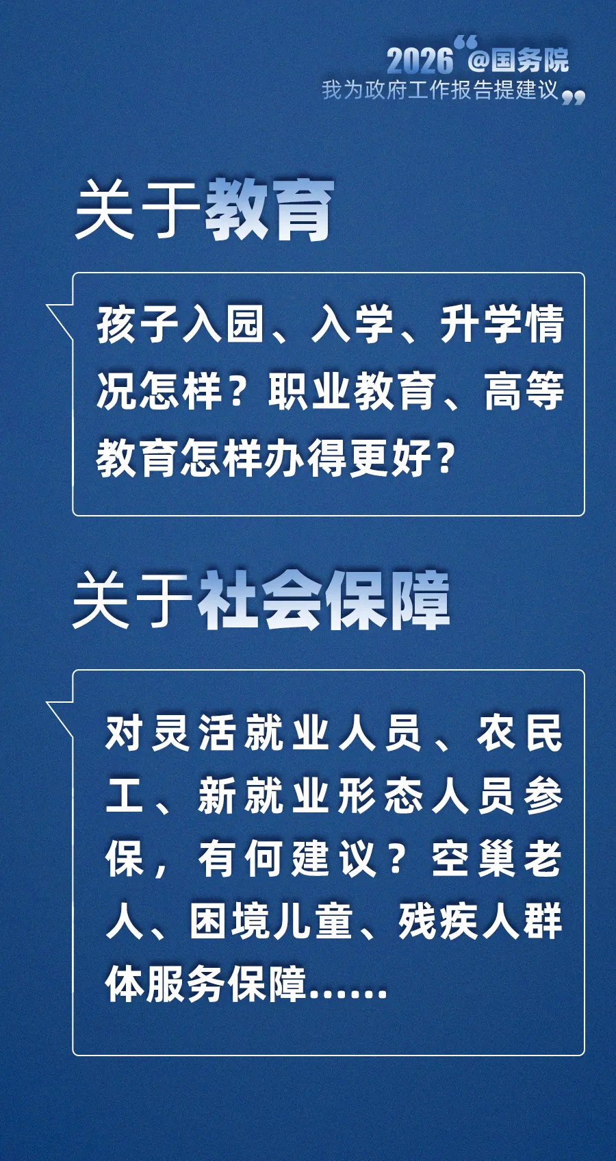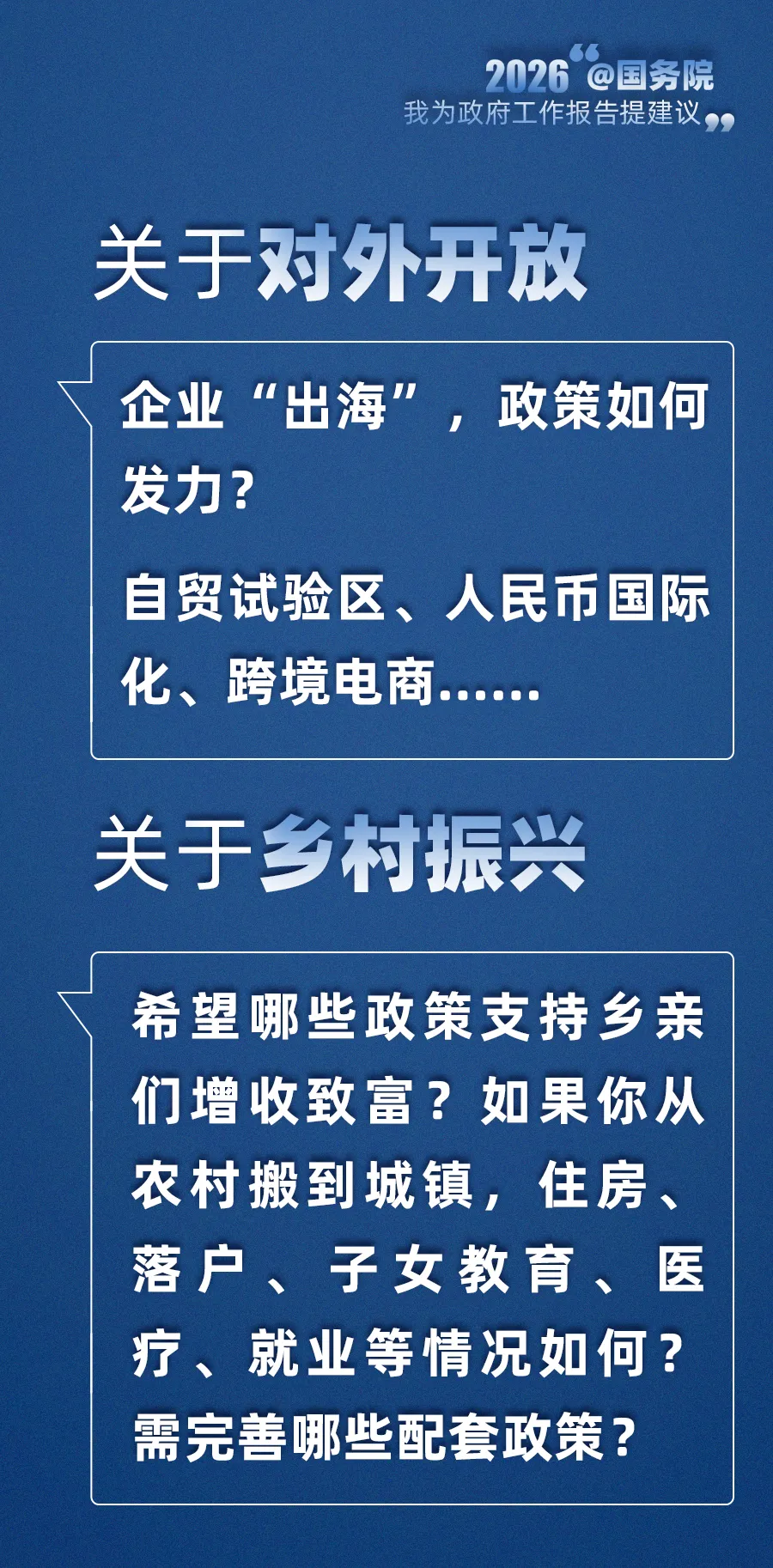 即日起,中国政府网联合第一财经等多家网络平台,开展“@国务院 我为政府工作报告提建议”网民建言征集活动。