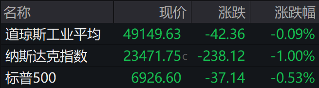 当地时间周三,美股全线下挫,截至收盘,道指跌0.09%,纳指跌1%,标普500指数跌0.53%。