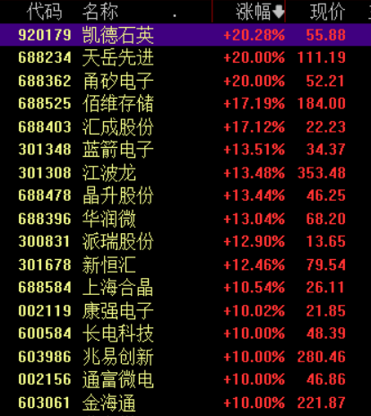 具体来看,半导体产业链爆发,天岳先进、通富微电、康强电子等多股涨停。