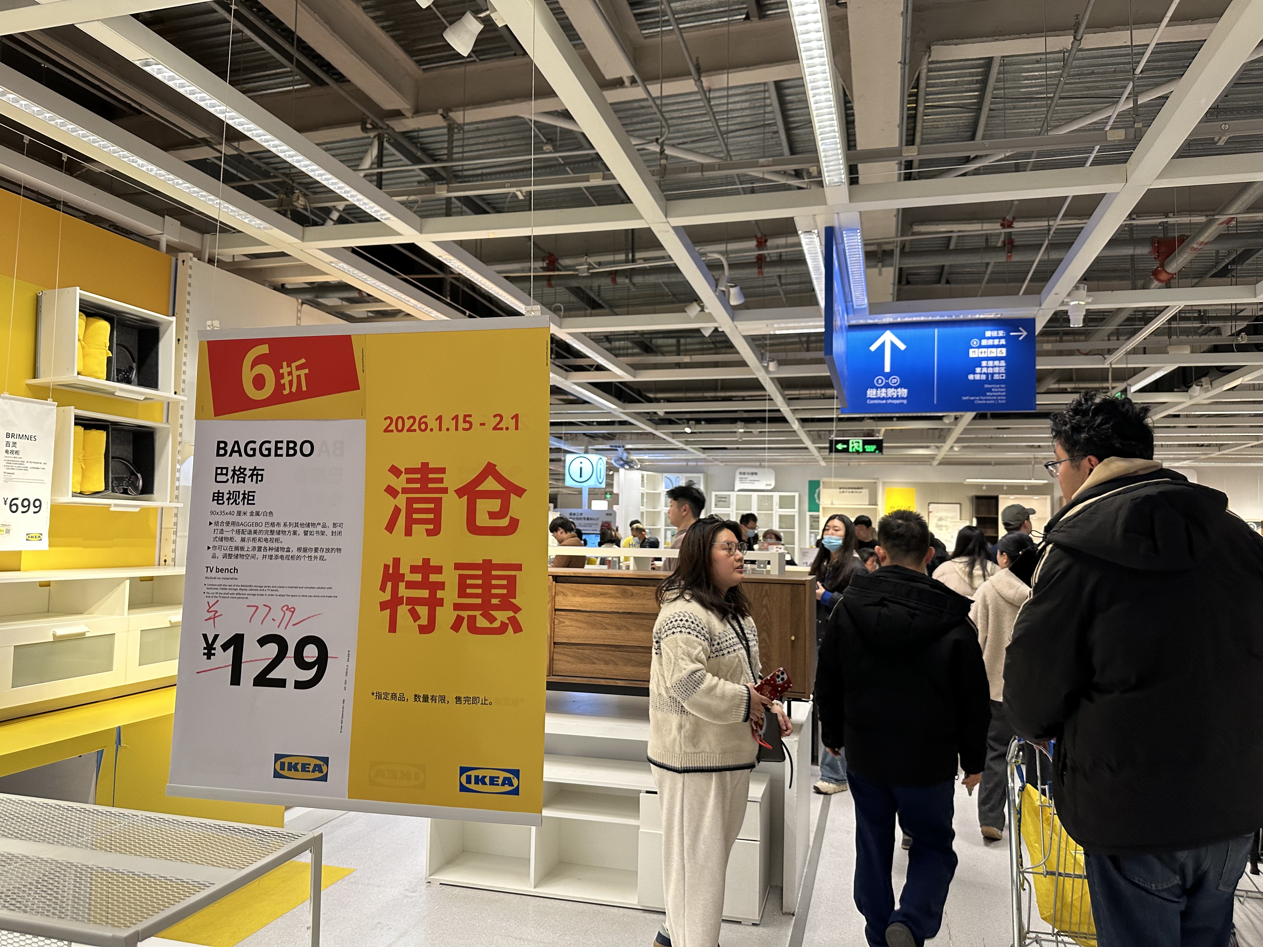 这家宜家门店即将在2月2日关闭,从1月15日起开始打折,商品3折起,第一财经记者在现场看到,与吴女士一样的客人非常多,一直到该商场即将结束营业时依然有大批客人在排队结账。