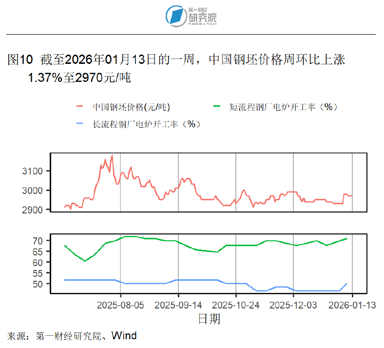 开工率方面,截至1月9日的短流程钢厂电炉开工率由一个月前的67.71%上升至70.83%;长流程钢厂电炉开工率由一个月前的46.67%上升至50%。截至1月8日的全钢胎汽车轮胎开工率由一周前的58.15%下降至58.02%,低于去年同期4.14个百分点;半钢胎汽车轮胎开工率由一周前的68.25%下降至65.89%,低于去年同期13.13个百分点。